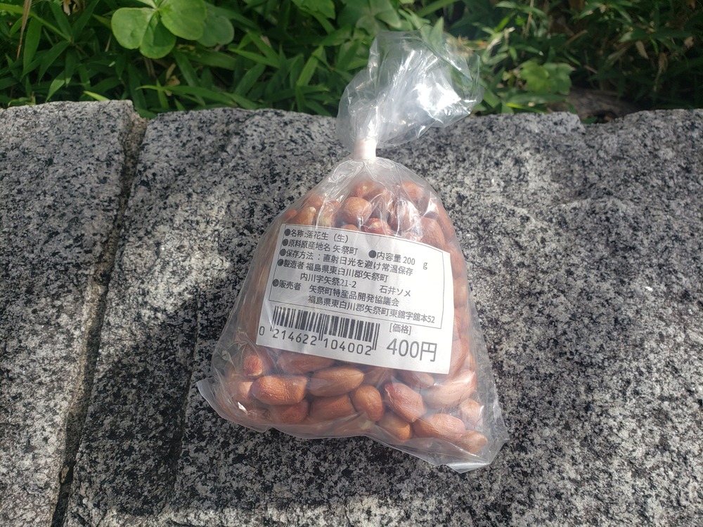 二つ目は、生の落花生です。生の落花生なんてどうやって食べるんだろうと不思議に思っていたら、売り場にいた矢祭町の方が「電子レンジをオーブンに設定して20分」と教えてくれました。