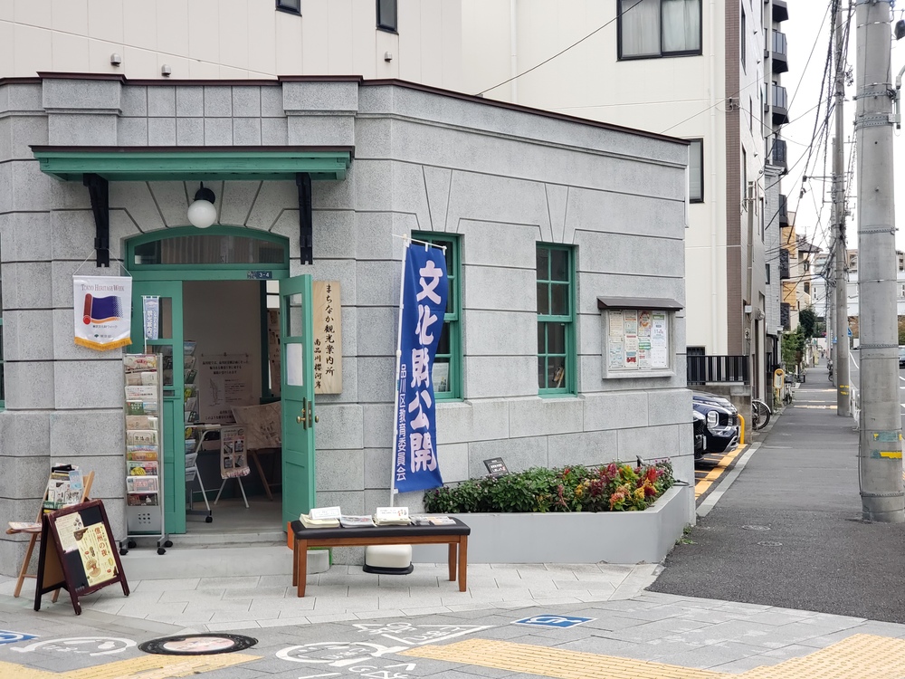 この建物は、品川警察署品川橋交通待機所だった場所で、昔の面影を残すレトロなデザイン。地元から保存の要望が根強く、現在は観光案内所として使われています。
