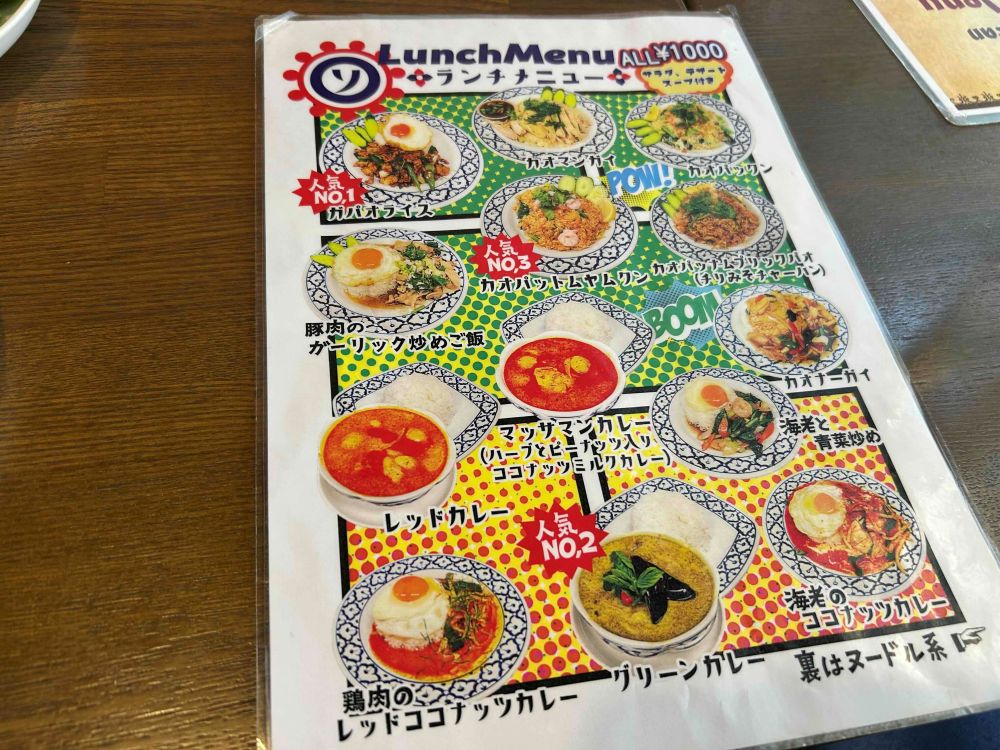 人気NO.1はガパオライス、NO.2はグリーンカレー、NO.3はカオパッドヤムクンだそう。定番のメニューが並んでいますね。