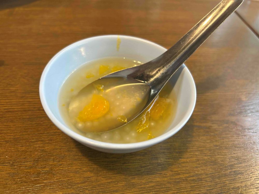 最後に、タピオカのデザートが運ばれてきました。メイン料理でお腹がいっぱいなので、このくらいのデザートがちょうどいい。お口直しにピッタリのデザートです。