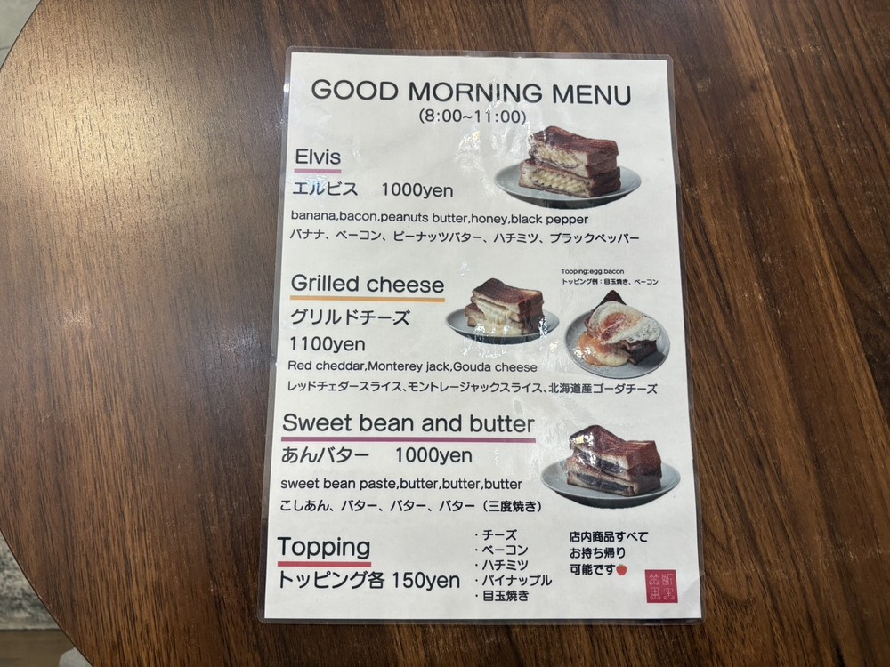 お店の方のおすすめは、モーニング限定メニューのエルビスがイチオシとのことでした。