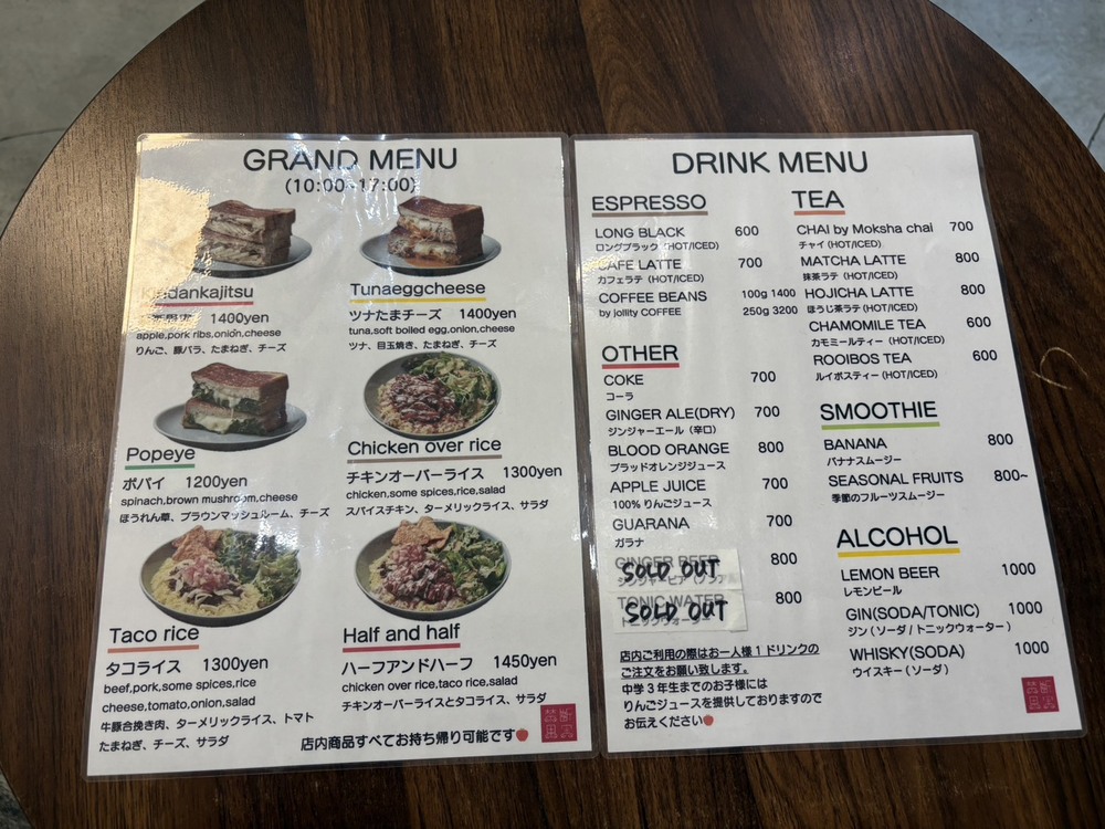 メニューは、朝8時から11時までのモーニングメニューと10時からオーダーできるグランドメニューの2種類あります。