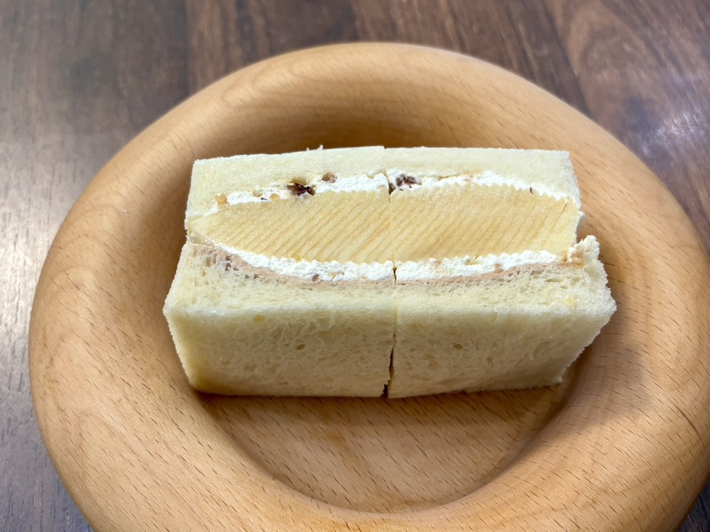 リンゴのフルーツサンド自体もはじめてお目にかかりましたが、一口食べてみると、スライスしたリンゴのシャキシャキした食感!