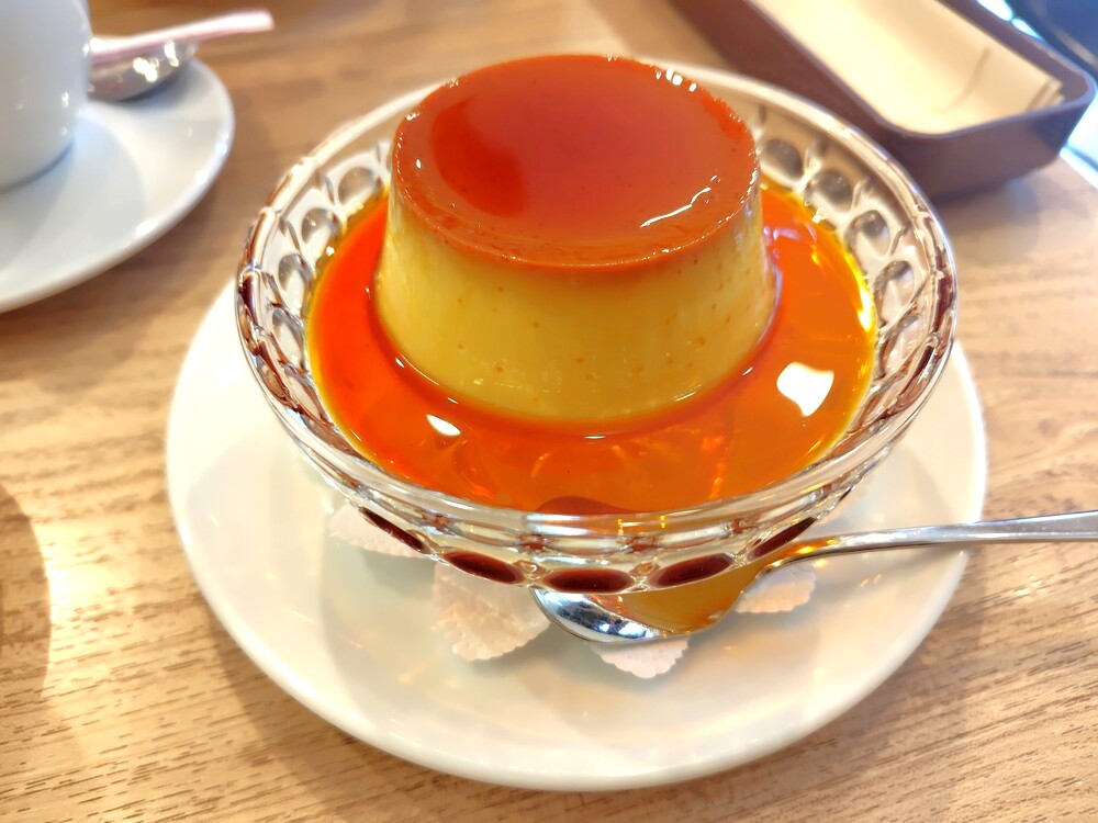 今回、限定5食のバスク風チーズケーキには残念ながらありつけませんでしたが、大好物の自家製プリンをいただきます。