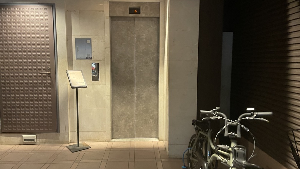 通路の一番奥まで進むと、エレベーターが見えてきました。 外の雰囲気とはまた違い、建物内は静かで落ち着いた印象です。
