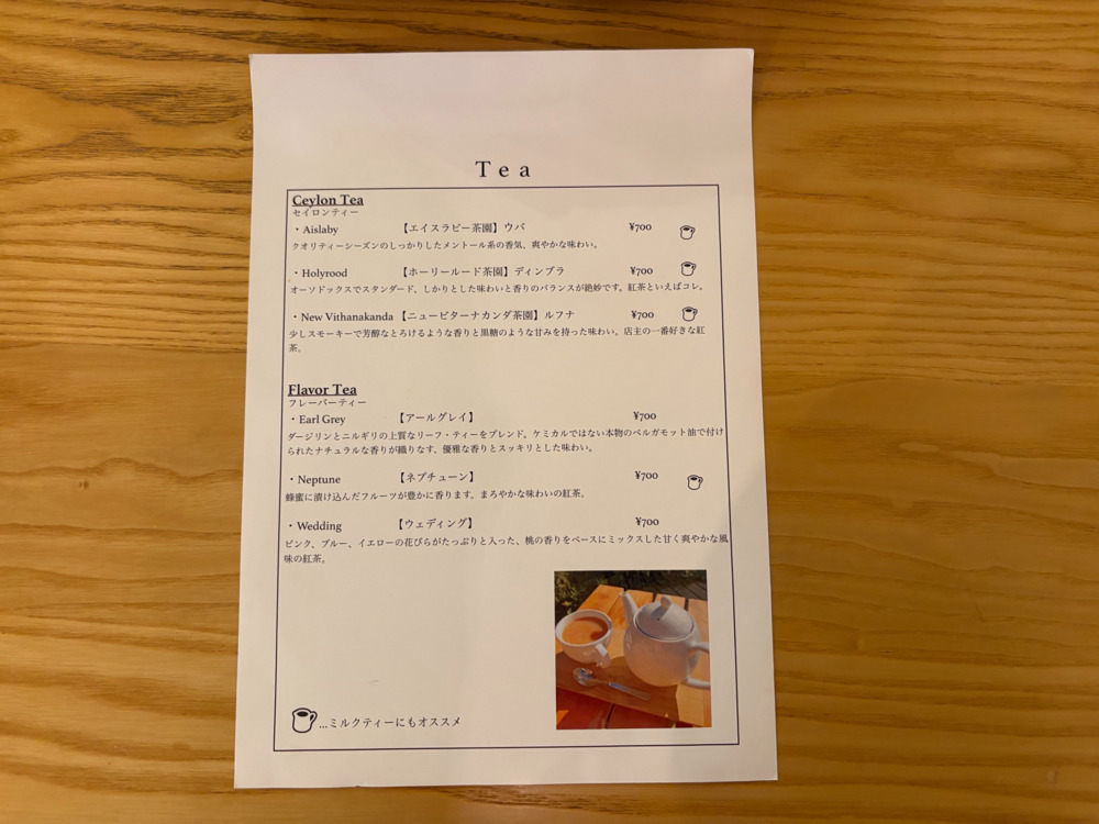 メニューには『 少しスモーキーで芳醇なとろけるような香りと黒糖のような甘みを持った味わい。店主の一番好きな紅茶。』と記載されていました。たまたま店主さんの一番好きな紅茶と被りました。