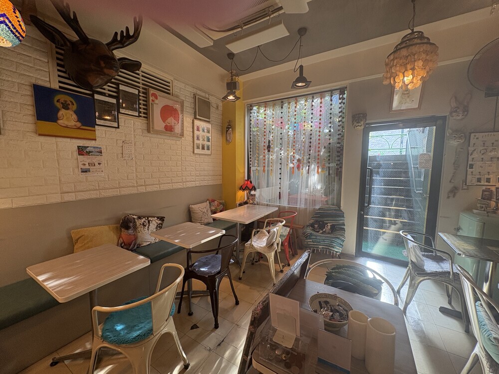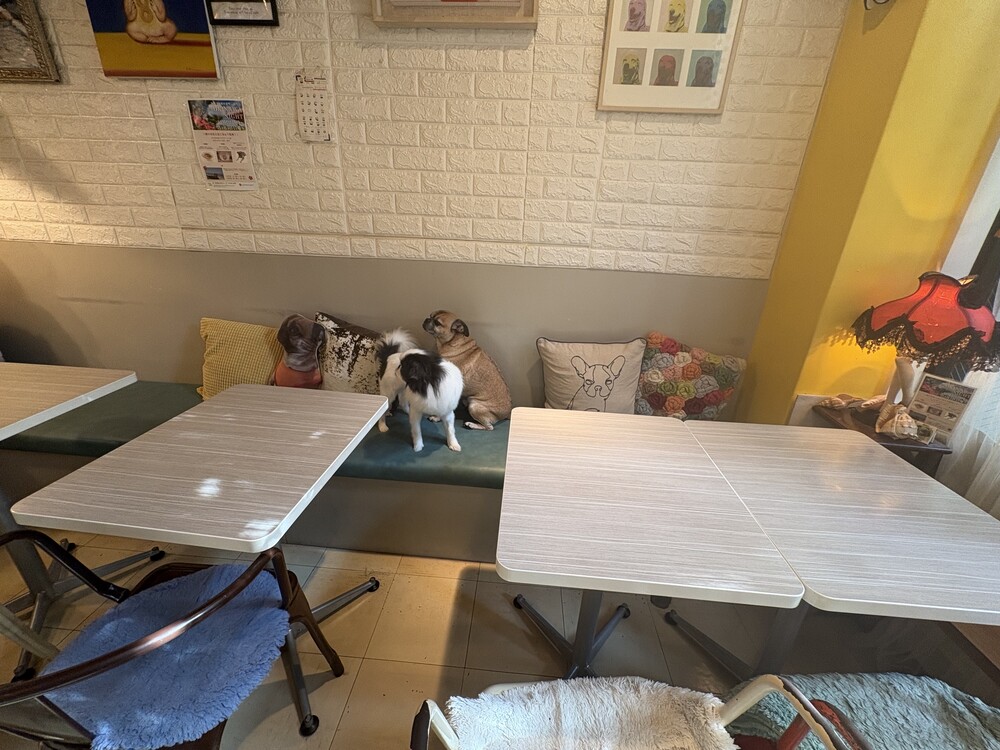 犬同伴もOKになっています。お店のワンちゃんも2匹、店内でくつろいでいました。