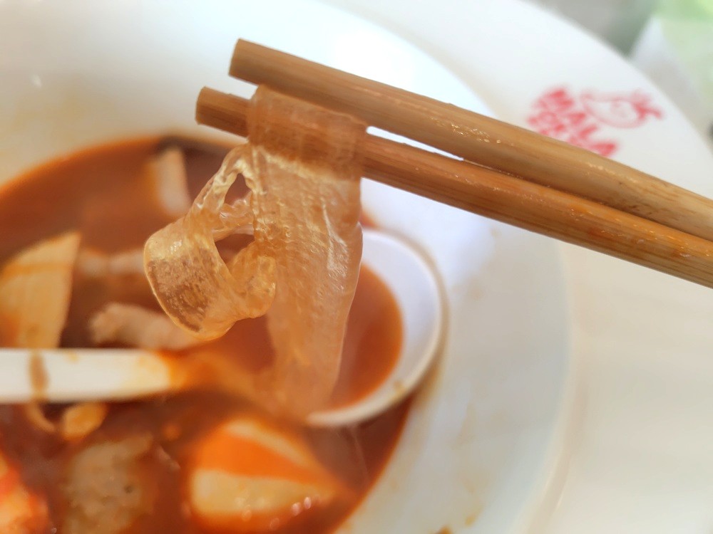 肉団子やカニ団子のうま味がスープに溶け、さらにうま味が溶けたスープを春雨が吸い、とんでもない相乗効果をもたらしています。
