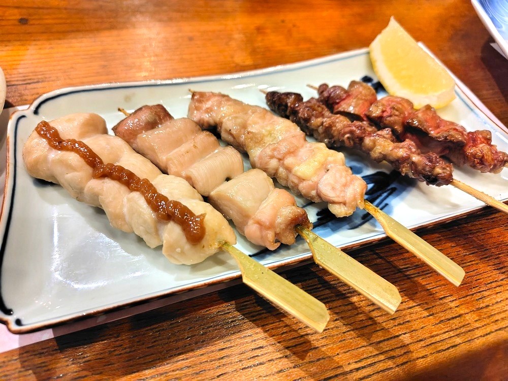 梅肉がのったささみは、ささみであることを疑いたくなるほどのしっとり感。ぼんじりの脂身はジューシーで甘く、プリプリの食感がおもしろいです。