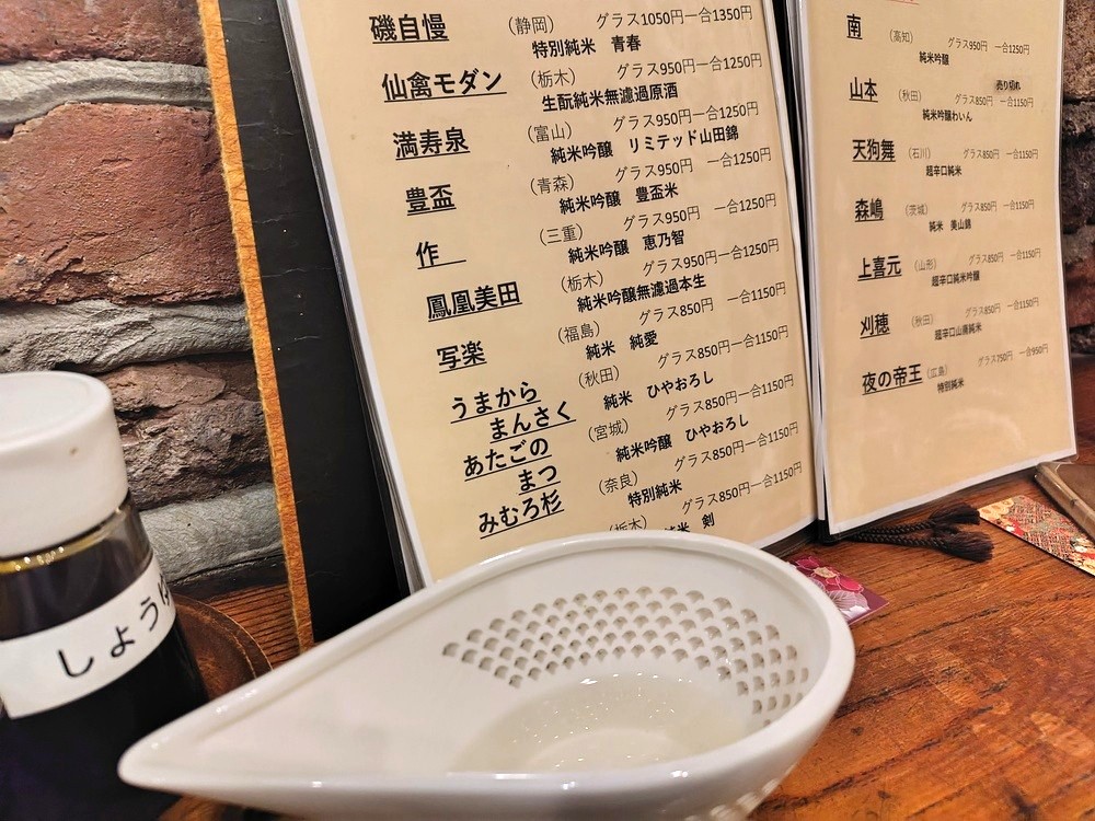 さらにうれしいことに、入手困難なプレミアム日本酒も豊富にそろっています。訪問時には青森県の「田酒」や三重県の「作」、そして山形県の「十四代」までそろっていました。