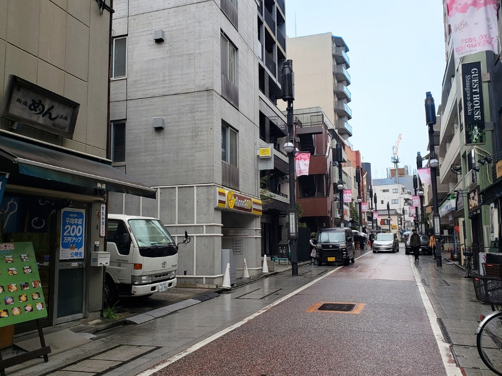 街道めん工房は、品川のまち歩きで人気の旧東海道沿いにあり、斜め向かいにはゲストハウスもあります。