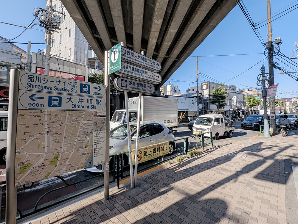 駅を出て、すぐ目の前の「ジュネーブ平和通り」を右側の「品川シーサイド駅」方面に歩きます。