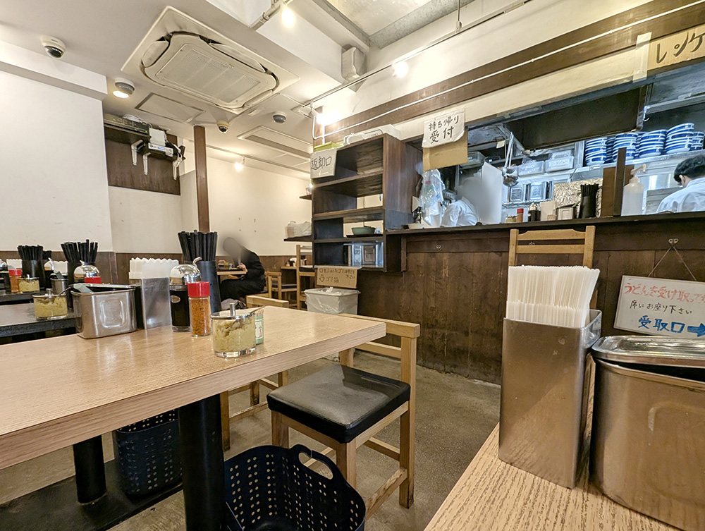 完全立ち食いスタイルの五反田本店に対し、東品川店は広々とした店内で、ゆっくり座りながら食事ができます。お子さまがいる家族連れでも安心して讃岐うどんを楽しむことができますよ。