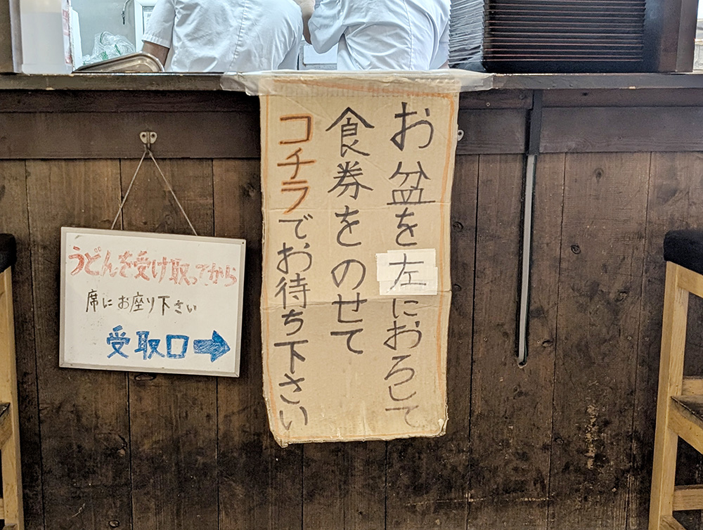 おにやんまの注文方法は、入り口前にある食券機で先に食券を購入の上、カウンターでうどんを受け取るシステムです。