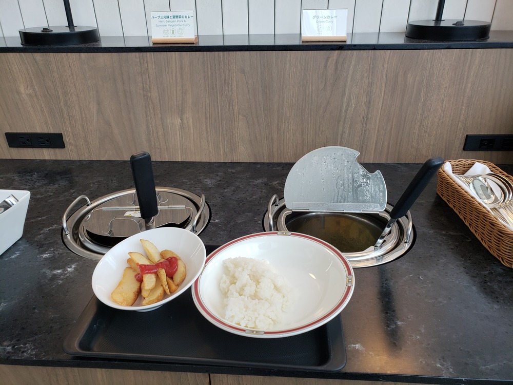 そして平日にはホテルのカレーが2種類楽しめるカレービュッフェ。私が行ったときはグリーンカレーがありました。