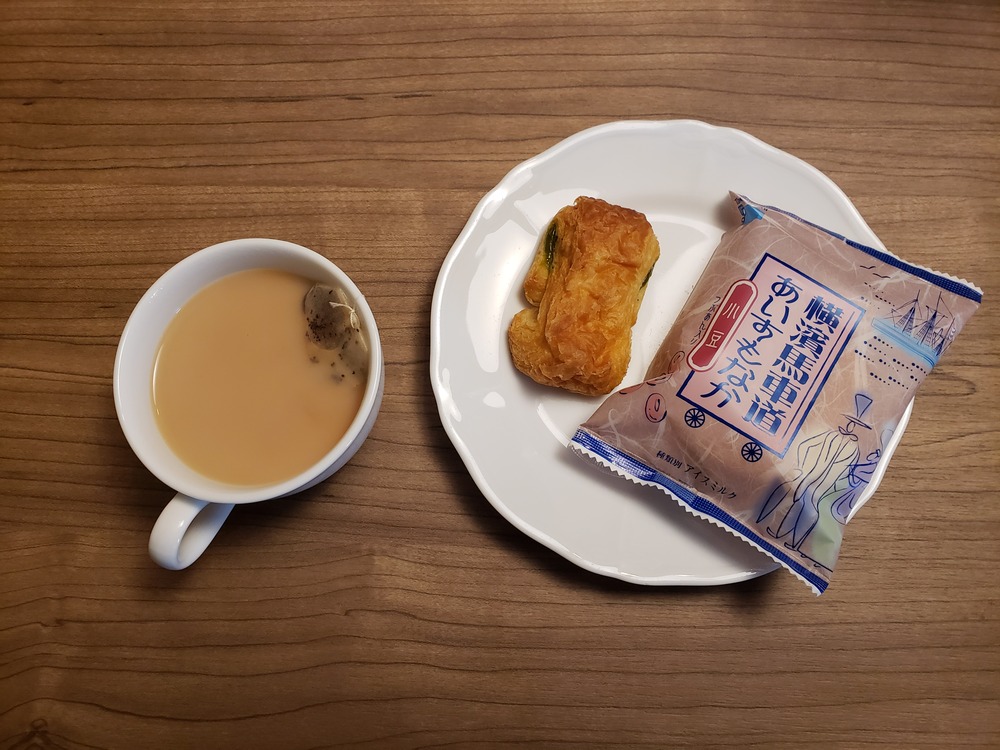 ティータイムには、お菓子コーナーから甘いものを。この日は、小さめのデニッシュパンも提供されていました。