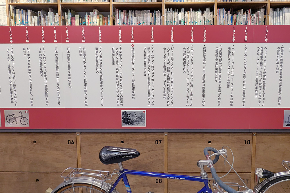 館内には大きな年表があり、200年にわたる自転車の歴史がわかりやすく紹介されています。