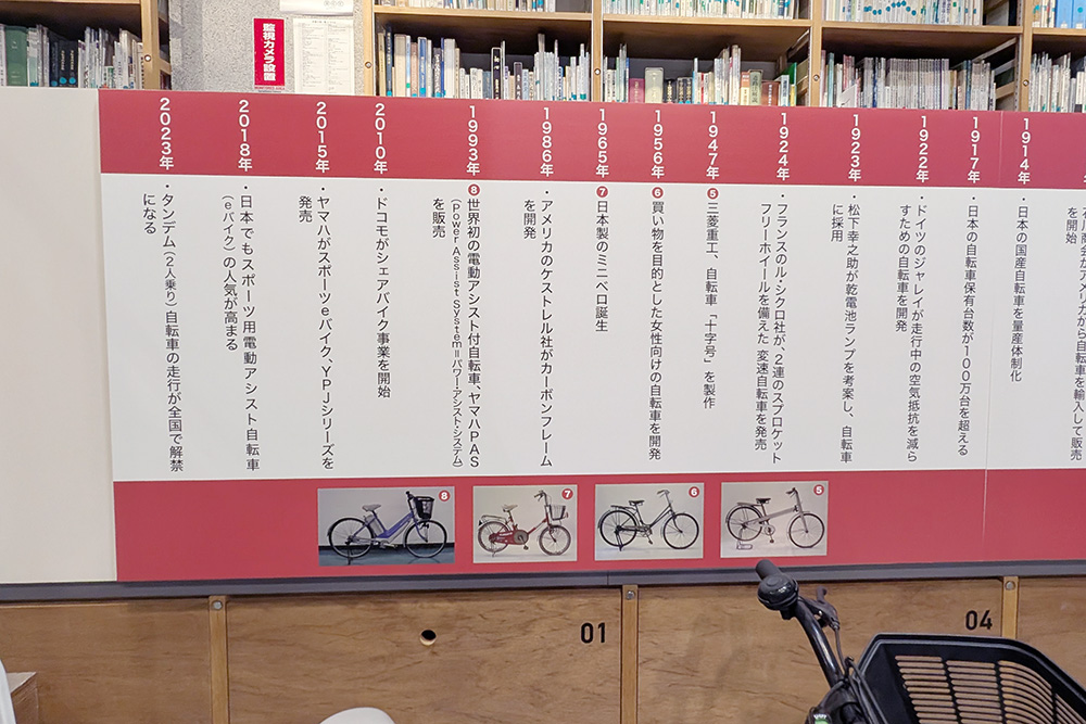 1917年(大正6年)には日本の自転車保有台数が100万台を超え、1923年(大正12年)には松下幸之助が乾電池ランプを考案して自転車に採用されたことなど、年表を通して貴重な自転車の歴史を知ることができますよ。