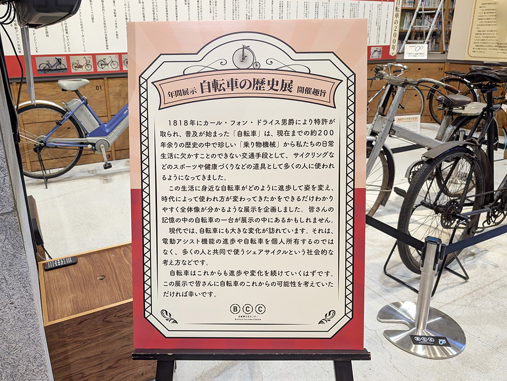 自転車の歴史展は、2025年4月23日から2026年3月29日までの期間で年間展示されています。