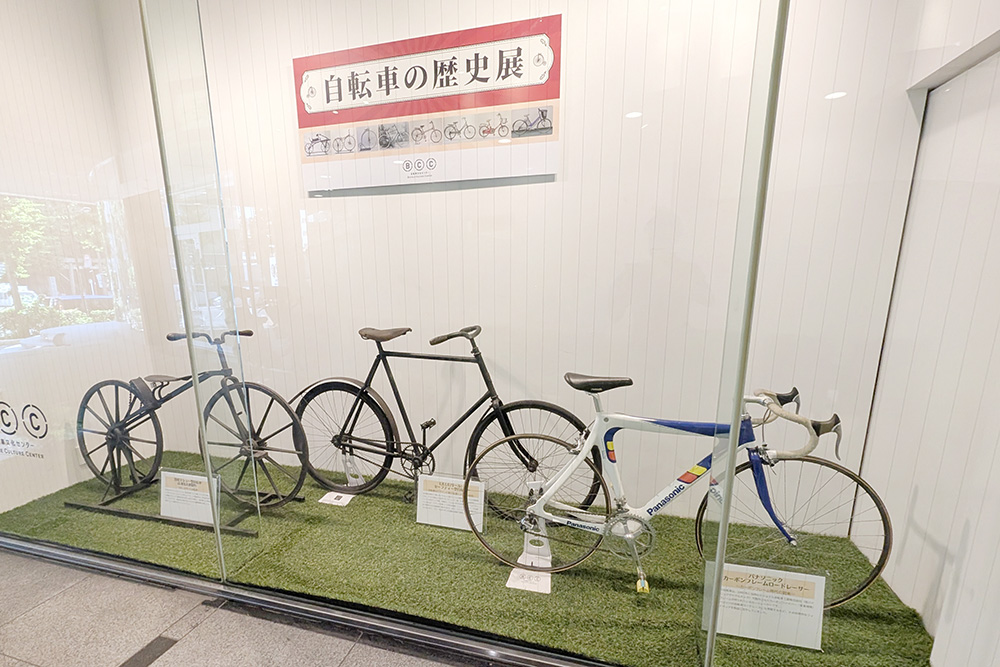 会場には、登場間もない頃の貴重な自転車から最近の自転車まで10台が展示されています。年表やパネルでわかりやすく紹介されており、自転車が好きな方はもちろん、多くのみなさんに自転車について知ってもらえる内容になっています。