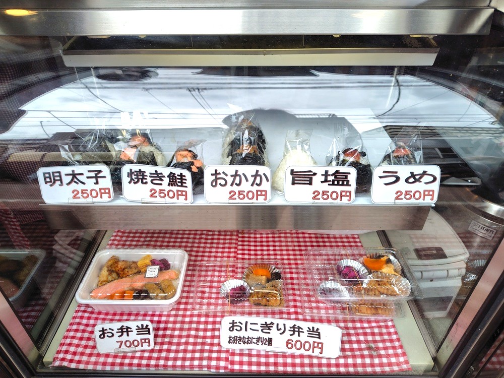 「人気なのは明太子と鮭ですよー」ショーケースの前で考え込んでいると、女将さんがほがらかに教えてくれました。