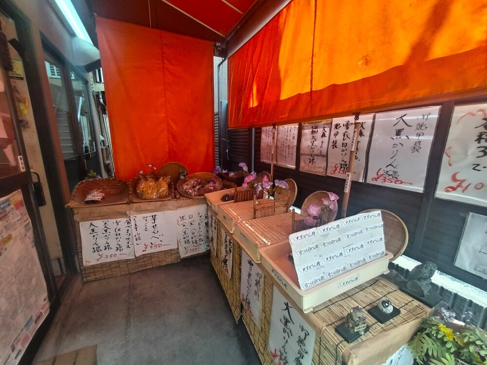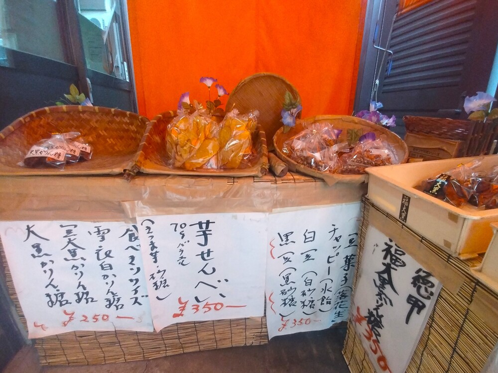 お店の名物は、大黒かりんとう。その他には、福大黒かりんとう、芋せんべい、豆菓子が並びます。