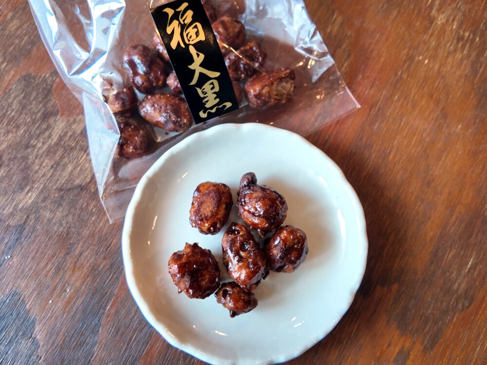 職人さんとのおしゃべりも、この場所を訪れる楽しみの一つになりそうです。温かい気持ちになり、名物の大黒かりん糖、福大黒かりんとう、芋せんべいを購入しました。