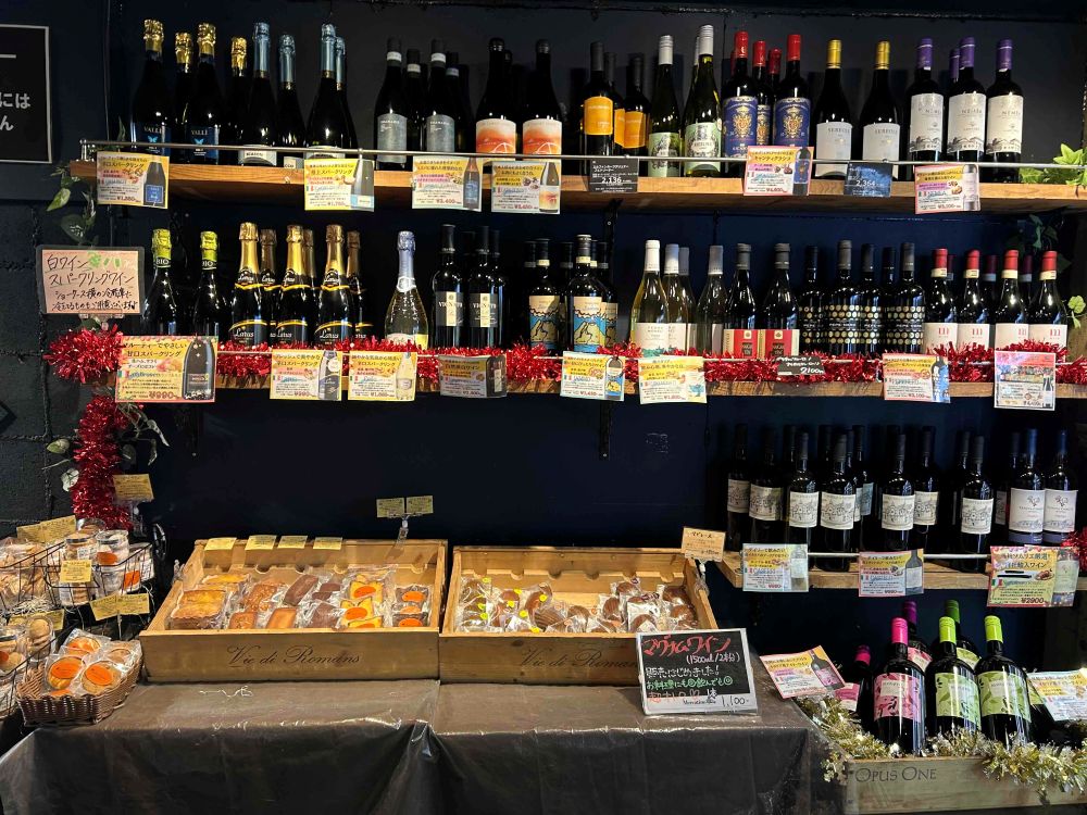ワインの数も豊富です。商品ごとに簡単な説明書きが貼られているので、ワインに詳しくない人でも安心。