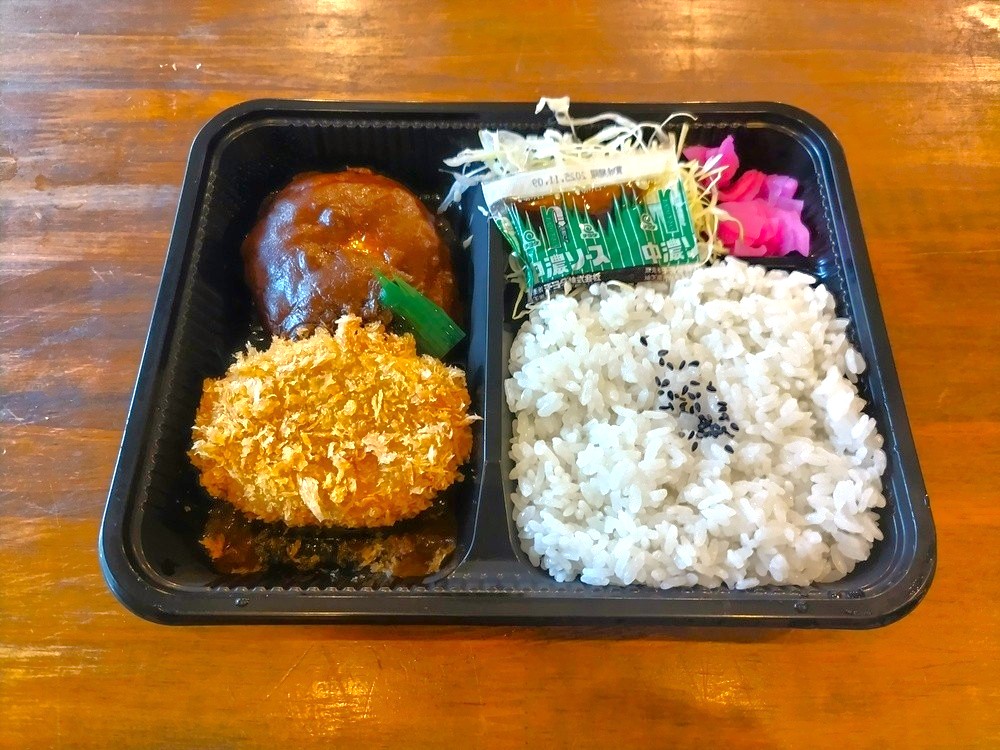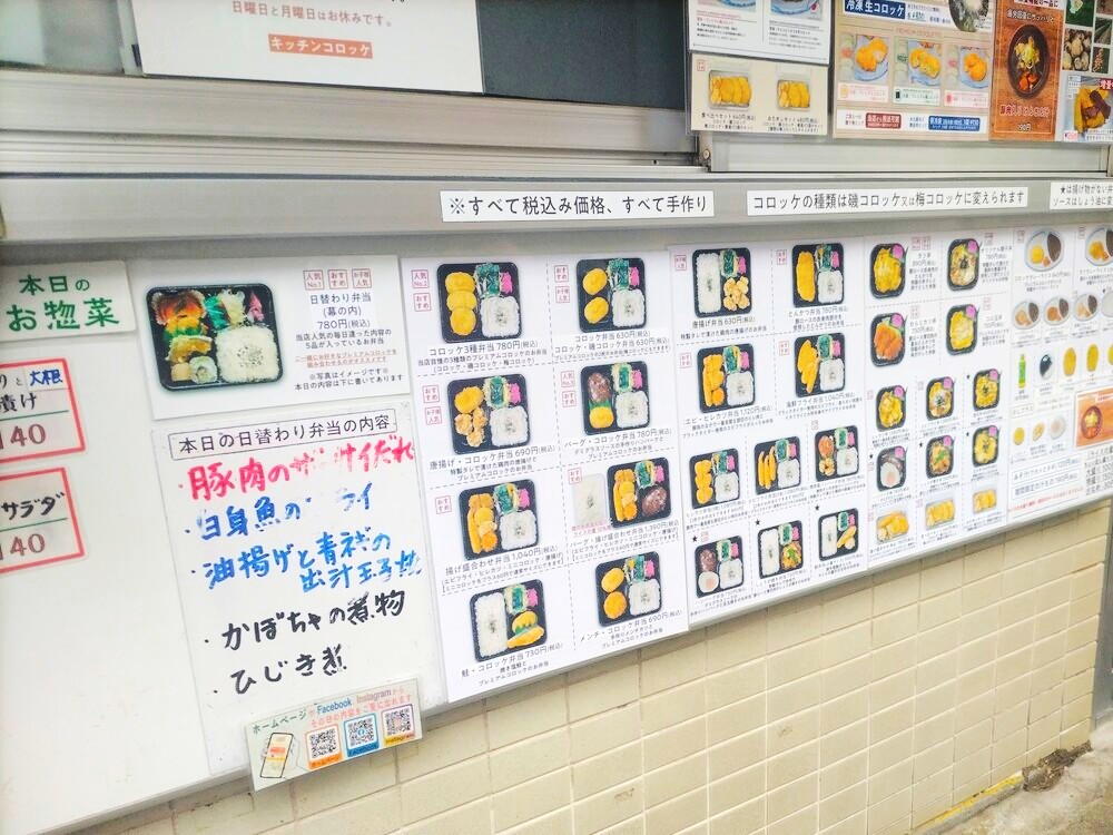 コロッケ弁当、唐揚げ・コロッケ弁当など名物のコロッケを主軸にすえたお弁当だけでなく、カレーやハンバーグ弁当など20種類以上もあります。