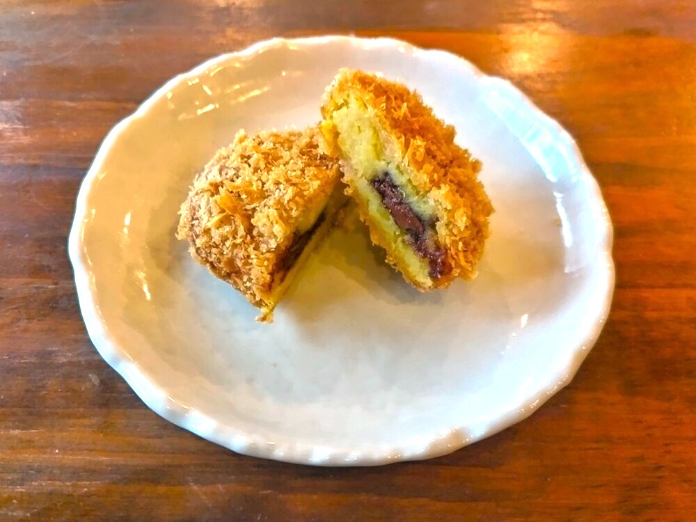 さつまいもの甘味、ほどよくとろけるチョコレートがたまりません。スイーツ系のコロッケもアリですね。